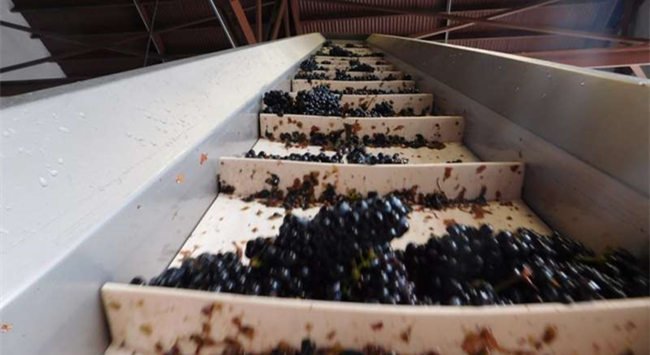 15. 葡萄去梗后,會經由傳送帶傳送到貯存容器,然后再被傳送到發酵器皿中。