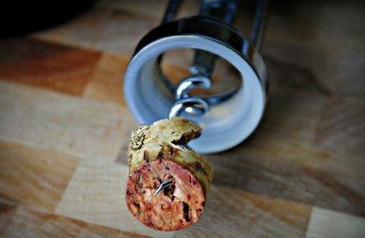 注意將螺旋鉆的尖端插入木塞的中間(如果插在邊上容易導致木塞斷裂或者有木碎片掉到酒里),再以順時針方向鉆入木塞中。如果是陳年的老酒,則可惜用專業的“侍者之友”的起子,注意不要將螺絲鉆全部鉆進木塞,而應留一環,因為都鉆到底會將軟木碎片掉到酒里面。