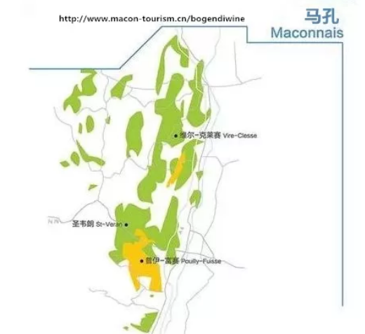 位于勃艮第南部的馬孔子產(chǎn)區(qū)南北蔓延35公里,東西橫跨10公里,在5個知名子產(chǎn)區(qū)中面積最大,盛產(chǎn)酒體偏飽滿、果香成熟和帶有奶油風(fēng)味的霞多麗白葡萄酒,尤以南部普伊-富賽Pouilly-Fuisse和圣維朗Saint-Veran名聲最盛。