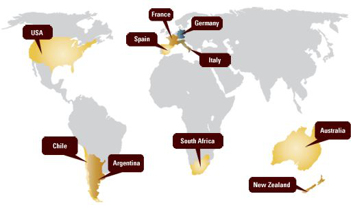 新世界葡萄酒多以機械化生產為主,現代化的科學技術栽培,畝產限量較為寬松,產量一般較多,采摘也多是機械化,產區命名制度(等級劃分)。
