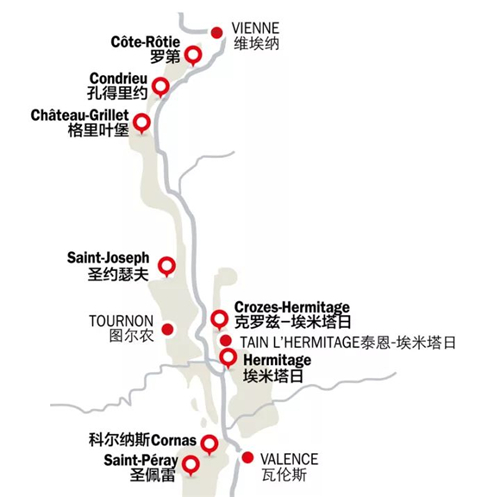 北羅納河谷最有名的產區當屬羅第(Côte-Rôtie)產區和埃米塔日(Hermitage)產區。