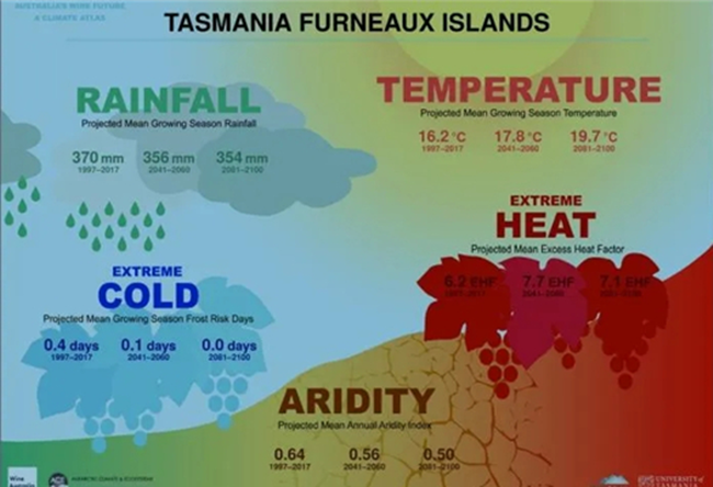 塔斯馬尼亞大學氣候?qū)W專家麗貝卡·哈里斯博士(Dr Rebecca Harris)表示,發(fā)行這本地圖冊目標是為澳大利亞葡萄酒生產(chǎn)商提供詳細的氣候預測,這本地圖冊是為葡萄酒產(chǎn)業(yè)“量身定做”的。