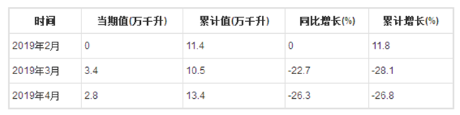 2019年1-4月全國葡萄酒產量分月數據