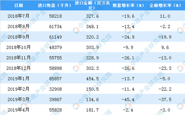 • 2019年1-4月中國葡萄酒進(jìn)口量同比下降19.6%
