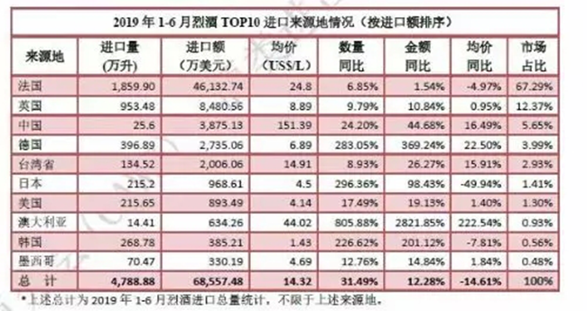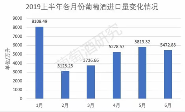 8月12日,中國(guó)食品土畜進(jìn)出口商會(huì)酒類進(jìn)出口商分會(huì)公布2019年1-6月酒類統(tǒng)計(jì)數(shù)據(jù),數(shù)據(jù)顯示,2019年上半年,進(jìn)口葡萄酒仍處低位,進(jìn)口量3.1億升,降幅進(jìn)一步收窄3%,進(jìn)口額12.3億美元,降幅基本持平。烈酒方面呈現(xiàn)逆市飄紅,進(jìn)口量實(shí)現(xiàn)超三成增長(zhǎng)。