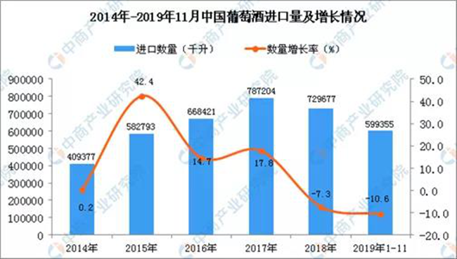 2019年市場一度被悲觀情緒所籠罩,原因是在經(jīng)過了2014-2017連續(xù)4年的高增長之后,中國葡萄酒進口市場迎來了2018和2019連續(xù)兩年進口額下降。