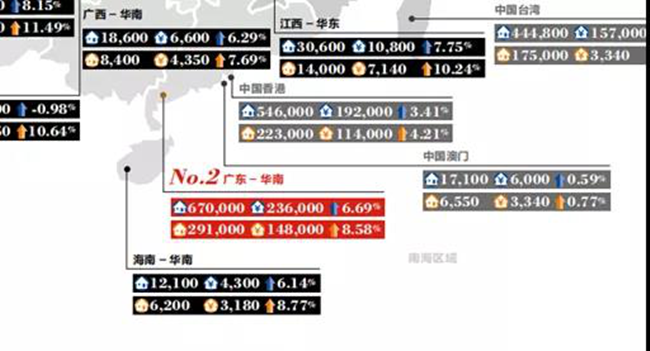 CBNData顯示,廣東是2018和2019年度酒水消費金額占比最高的省份,而廣東省坐擁深圳和廣州兩個一線城市,表現(xiàn)十分搶眼。 回頭看廣東省600萬及1000萬資產家庭數(shù)量,結論顯而易見了。