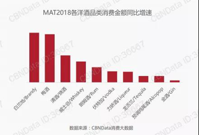 在2018年和2019年的消費數(shù)據(jù)中顯示,白蘭地、梅酒和清酒等均增速迅猛。
