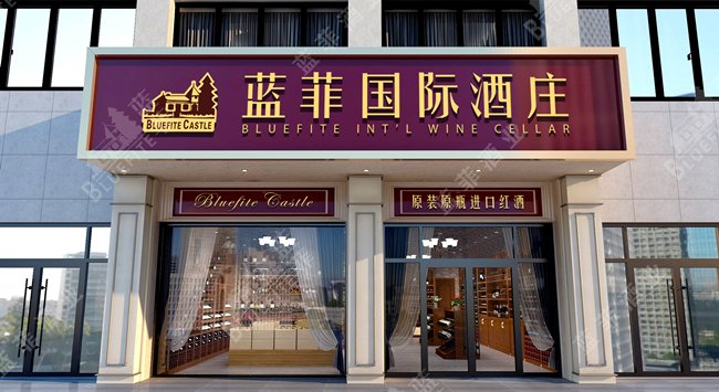 藍菲紅酒專賣/加盟店門頭裝修效果圖 豪華葡萄酒酒莊/酒窖/店面設計樣式圖片大全